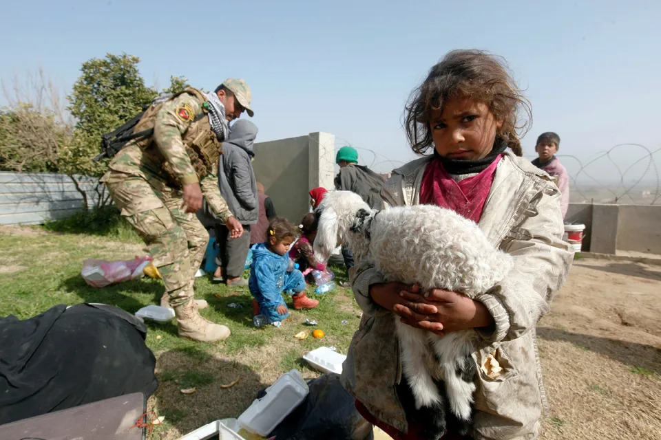 Families displaced as war rages between Iraqi forces and Islamic State militants fighting for control of the streets of Mosul.